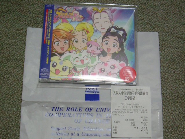 えーっと、何でこんな CD が大学生協の書籍部にあるんですか。 工学部支店だから買う奴が一人くらい居るだろ〜と見透かされてるのかなぁ (爆)。 まぁ結局まんまと買ってるわけですが。15% OFF だしぃ〜(ぉ