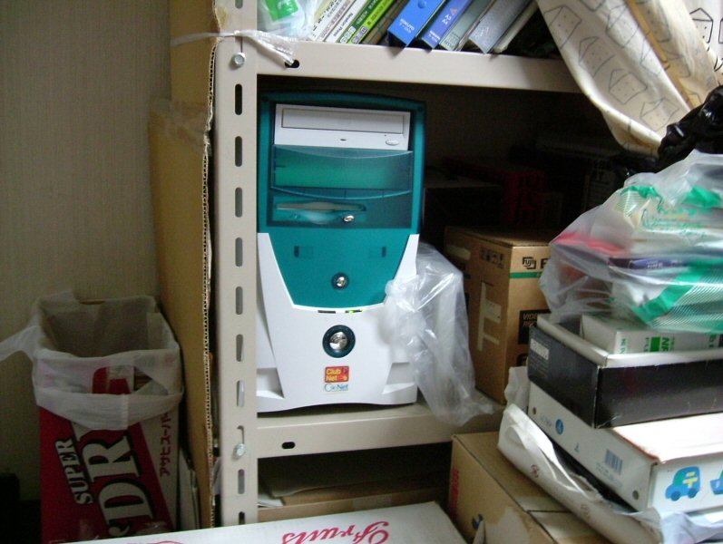 2004/12 現在のセカンドマシン。 余り物のパーツをかき集めた構成のため非常にアンバランスな設計だが、 1 か月以上サーバとしての連続運用に成功していたためハードウェア的な安定性は十分と見られる。