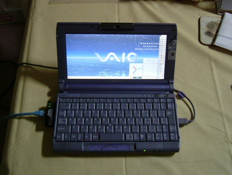 | ちょっと遅くなった感がある PentiumII。ワープロ程度ならば快適に動作する。 ちなみにこれが Intel 製 CPU を積んだ VAIO C1 最後の機種。 以後の VAIO C1 は CPU が Transmeta Crusoe になった。 | |
